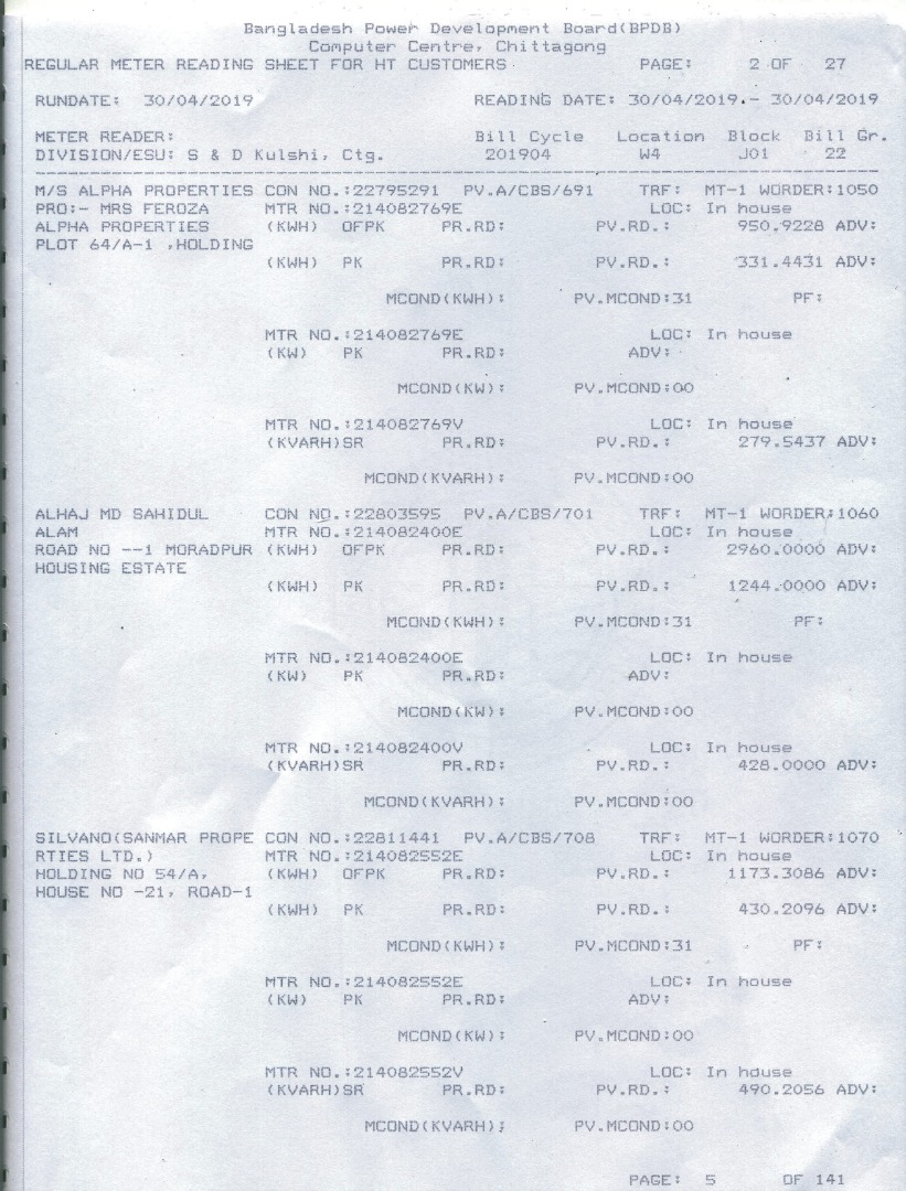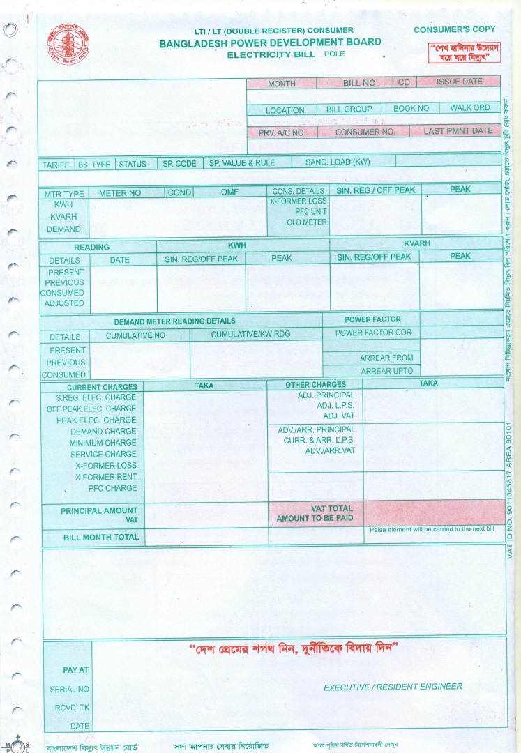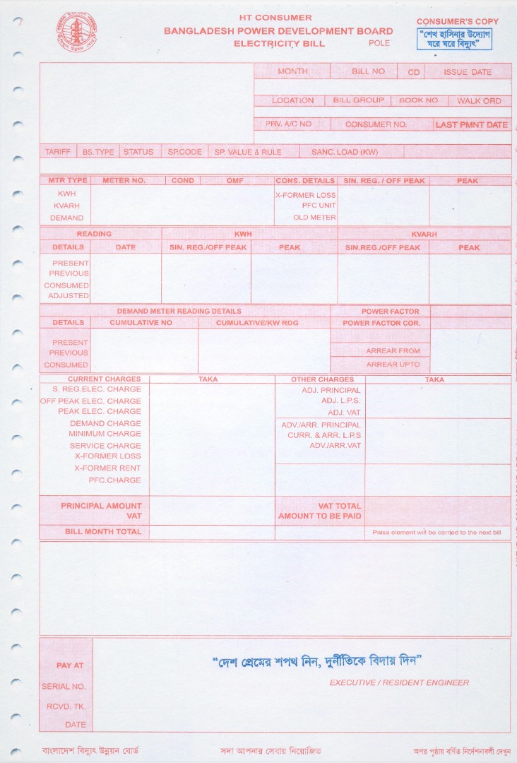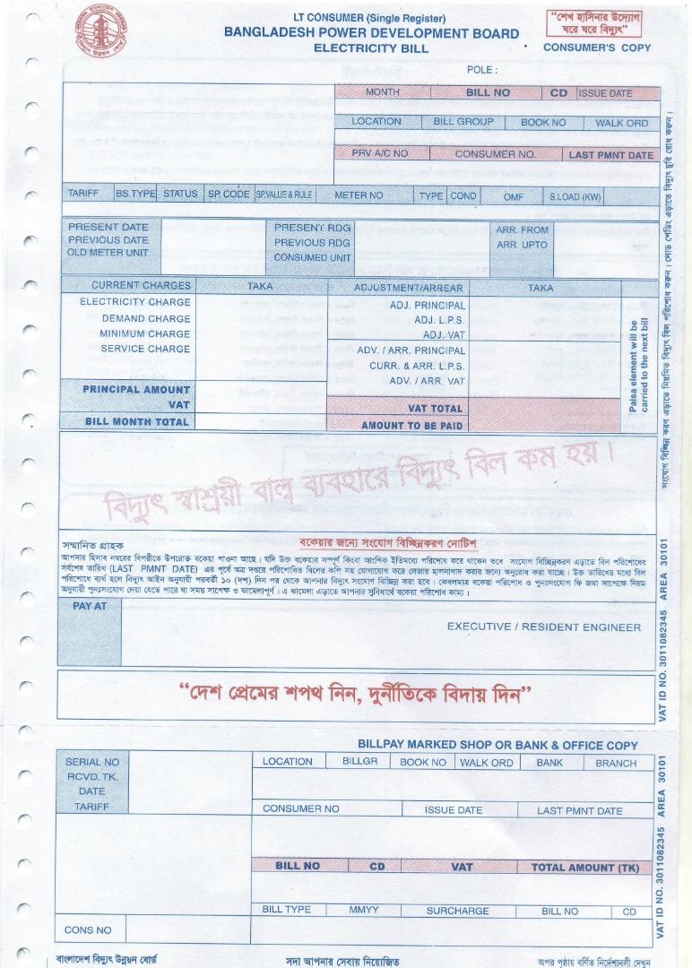 ১। বিদ্যুৎ বিল ফর্ম